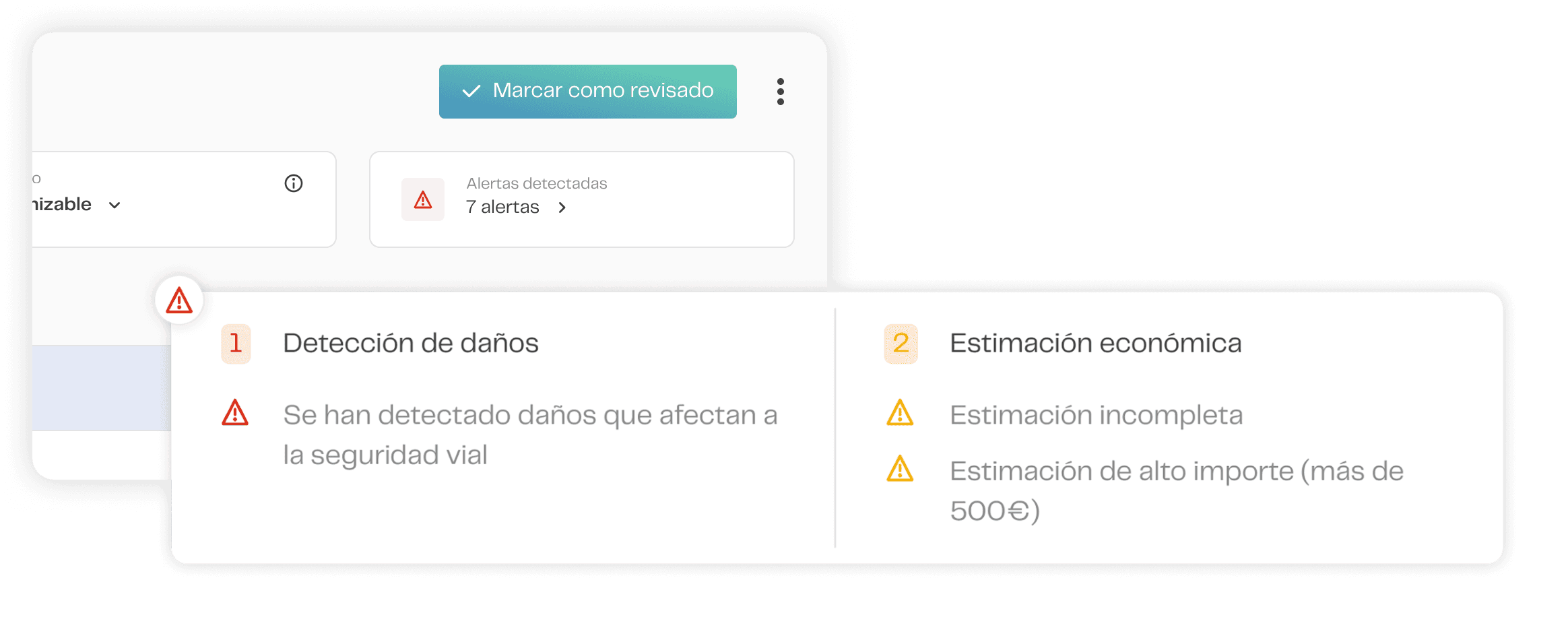 Propusimos eliminar varias alertas. La resistencia fue inmediata: "los clientes las pidieron, si las quitamos habrá quejas". Nuestro argumento era simple: los peritos no las usaban. Teníamos grabaciones, teníamos datos. Las reorganizamos, priorizamos y eliminamos las que no tenían sentido operativo. El criterio no fue estético — fue el comportamiento documentado.