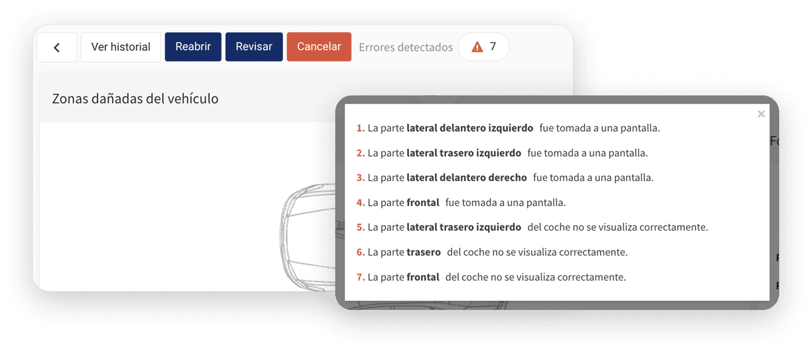 Las máscaras de IA sobre las imágenes — el showcase visual del producto — dificultaban la evaluación del daño real por parte del perito.